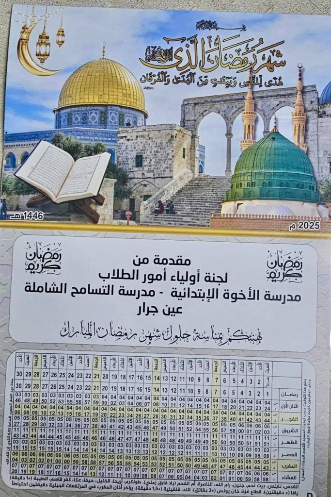 في لفتة طيبة مباركة زارت لجنة أولياء الأمور في مدرسة التّسامح الشّاملة طاقم المدرسة وطلابها وقامت بتوزيع رزنامة رمضان على الطلاب في الجناحين الاعدادي والثانوي..